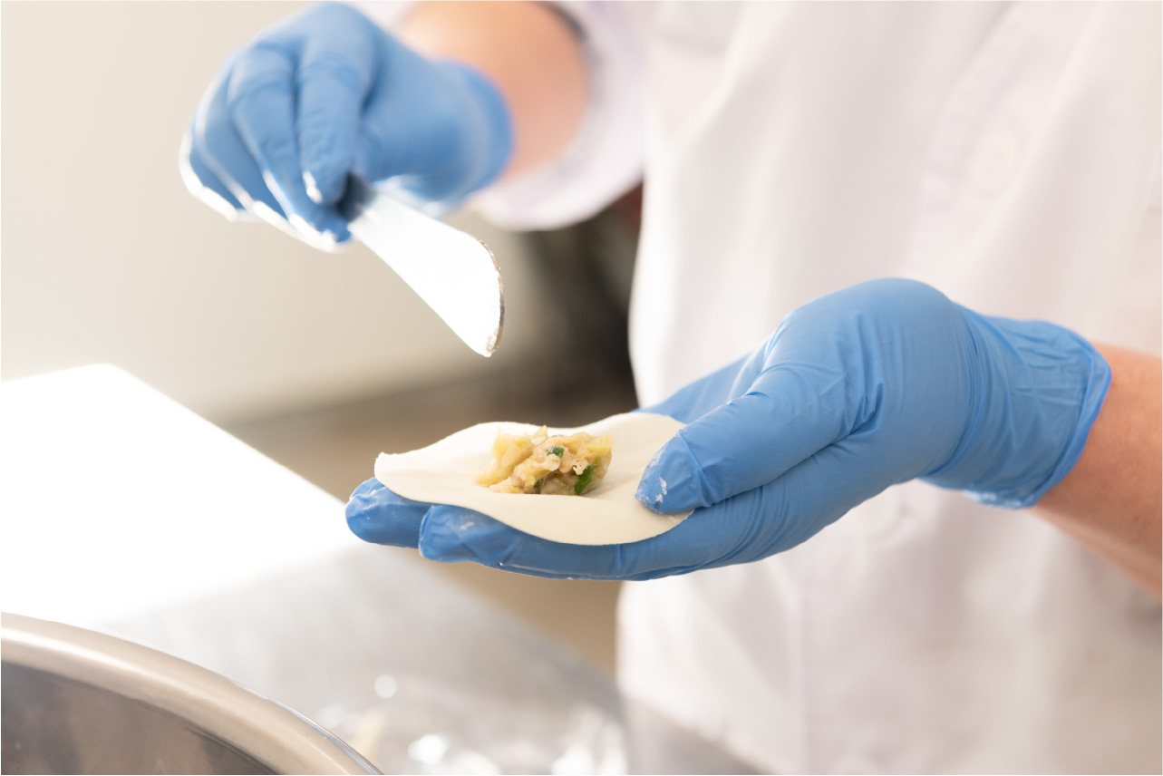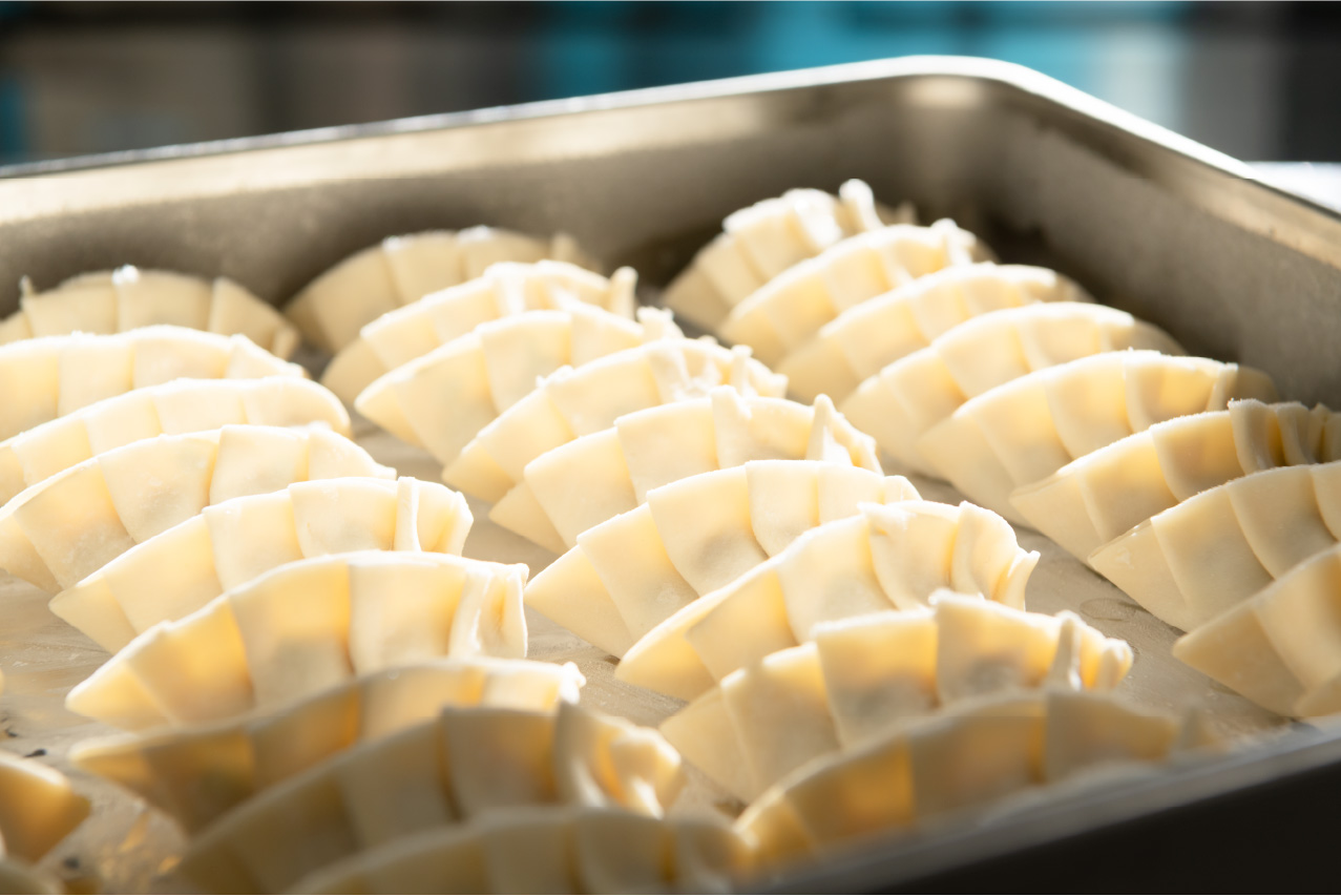地元町田市の製麺所「松製麺」特製の皮を使用!皮はモチモチ、中はジューシー!